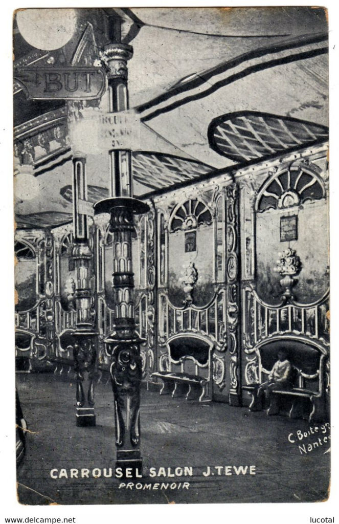 Cartes postales du carrousel salon de la famille Tewe. Remarquez le superbe promenoir et sa très belle décoration.
